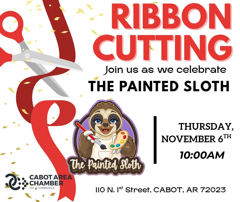 Come show your support for this talented local artist and small business owner as we welcome The Painted Sloth to the Cabot Chamber community! 🎉