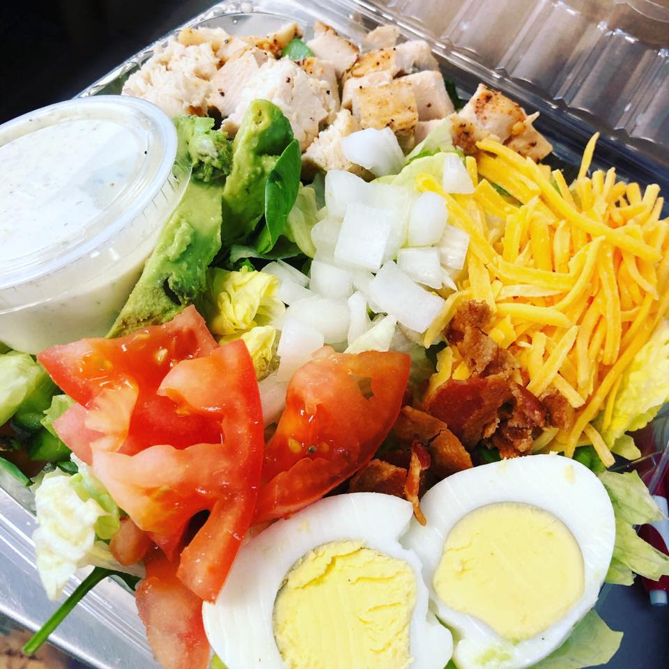 Cobb Salad: A hearty salad with grilled chicken, bacon, eggs, and cheese.